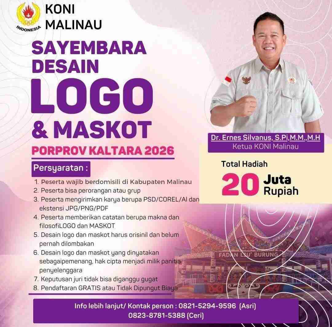 Bagi masyarakat yang ingin mengikuti sayembara maskot Porprov Kalimantan Utara 2026, informasi lebih lanjut dapat diperoleh melalui kontak panitia di nomor 0821-5294-9596 (Asri) dan 0823-8781-5388 (Ceri).