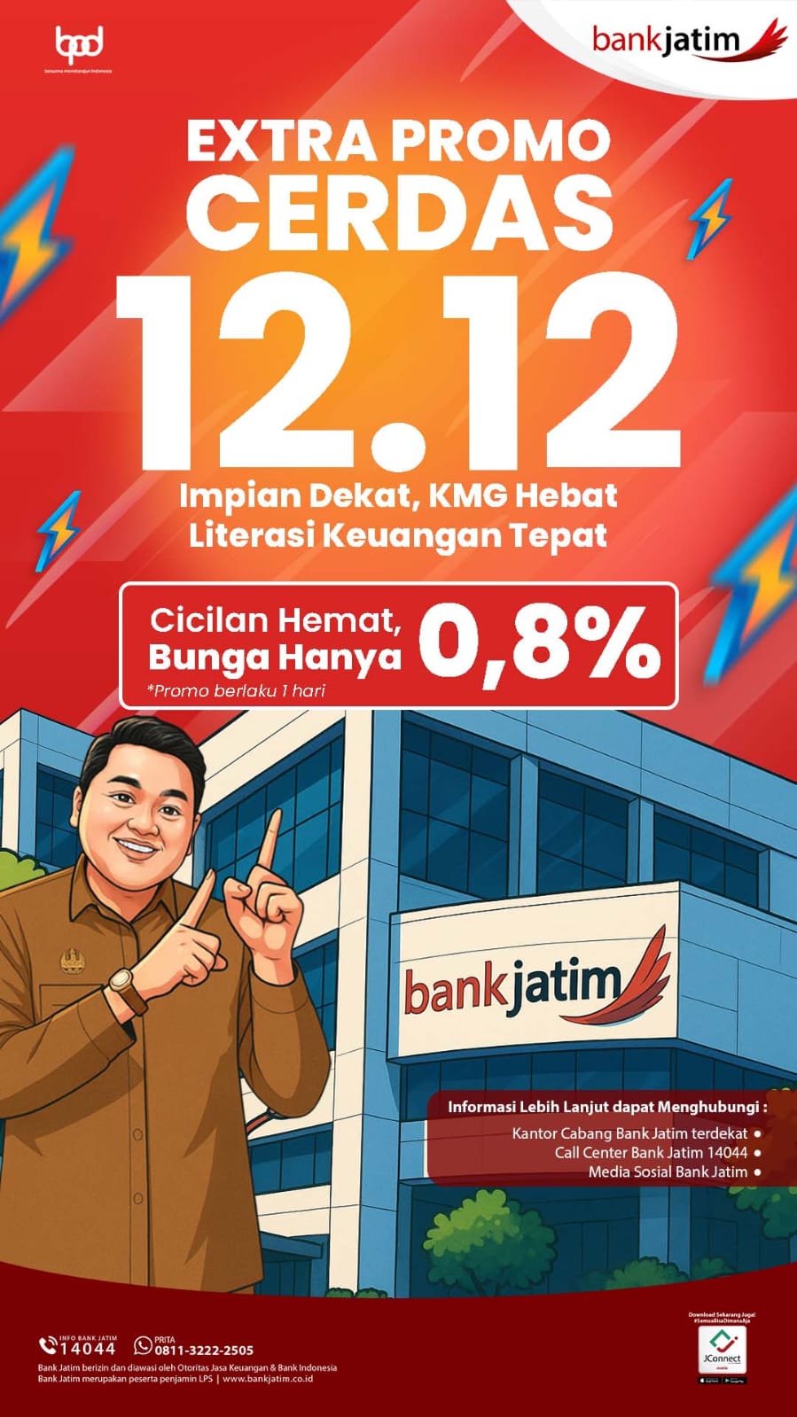 MAGETAN | NARASINFO.ID – Bank Jatim kembali menghadirkan program spesial bagi masyarakat, khususnya nasabah baru, melalui kampanye “Extra Promo Cerdas 12.12” yang berlangsung terbatas selama satu hari. Program ini menawarkan bunga cicilan super ringan, yakni hanya 0,8 persen, sebagai bentuk dukungan peningkatan literasi dan kemudahan layanan keuangan bagi masyarakat.