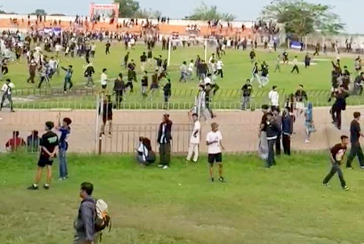 MAGETAN | NARASINFO.ID – Laga persahabatan antara Persemag Magetan dan Madiun Putra FC (MPFC) di Stadion Yosonegoro, Sabtu (29/11/2025) sore, terpaksa dihentikan setelah kericuhan pecah di area tribun. Pertandingan yang seharusnya menjadi ajang uji coba kedua tim itu berakhir pada menit ke-65 saat MPFC unggul 1-0.